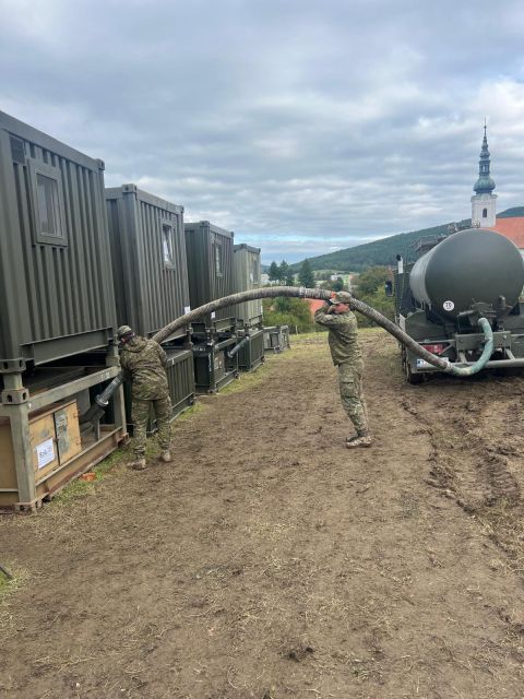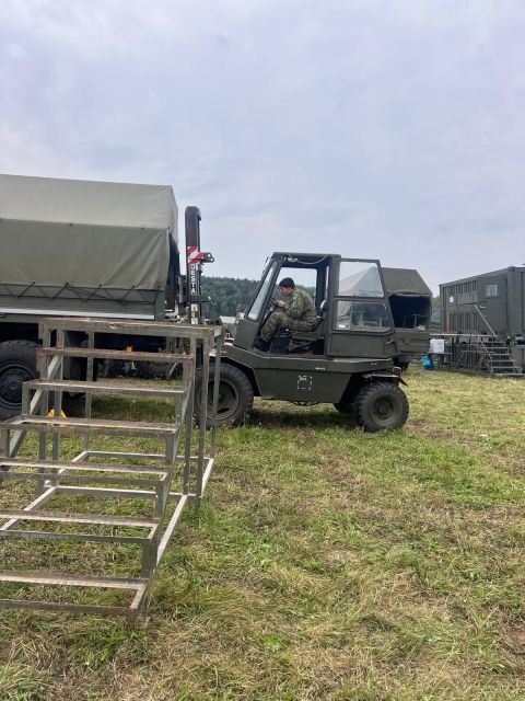 Deň ozbrojených síl SR aj tento rok vo veľkom Vojenské ukážky, zoskok výsadkárov, skvelá hudba – aj tieto veci charakterizovali tohtoročné oslavy Dňa ozbrojených síl SR, ktoré sa uskutočnili 28. septembra 2025 v Brezovej pod Bradlom. 53. prápor poľných služieb Hlohovec, ako jedna z dôležitých zložiek logistického zabezpečenia ozbrojených síl, participoval na organizácii tohto veľkolepého podujatia. Príslušníci práporu začali s prípravami na tento deň už v pondelok 22. septembra, kedy prepravili 40 kontajnerov a začali s výstavbou poľného tábora. „V prvý deň sa nám podarilo sprevádzkovať poľnú kuchyňu, ktorá bola pripravená podávať navarenú teplú stravu pre 150 profesionálnych vojakov. Postavili sme 9 stanov NIXUS, ktoré boli pripravené na ubytovanie cvičiacich jednotiek, súčasne sme vystavali aj 2 súpravy sociálnych zariadení a poľný park. V nasledujúcich dňoch sme postavili ešte 4 sociálne súpravy, vybudovali VIP zóny a popri tom sme sa starali o chod tábora, čo zahŕňa varenie stravy, upratovanie sociálnych zariadení, odvoz odpadu, dotankovanie techniky, umývanie techniky či prevoz vody nevyhnutnej k zabezpečeniu chodu tábora,“ takto opísal prípravy styčný dôstojník za 53. prápor poľných služieb Hlohovec nadporučík Michal Dančo. Zároveň vyzdvihol pomoc od kolegov z Trebišova: „Počas tohto týždňa sme sa stretli aj s nepriazňou počasia, čo malo za následok problémy so zásobovaním tábora, ale v tejto zložitej situácii nám poskytli pomocnú ruku tankisti z Trebišova a za pomoci tanku nám problémovú techniku vytiahli do tábora.“ Príprava dôstojných osláv znamenala pre 53. prápor poľných služieb Hlohovec zabezpečiť komfortné zázemie pre všetkých účinkujúcich aj návštevníkov. Stovky až tisíce návštevníkov, skvelá atmosféra a vojenský zážitok z prvej línie vypovedá o úspechu tohoročného Dňa ozbrojených síl SR. Teší nás, že po skončení akcie sme dostali iba pozitívne ohlasy na našu adresu a už teraz sme pripravení plniť ďalšie úlohy.