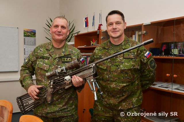 Odovzdanie umeleckého diela do Depozitára predmetov kultúrnej hodnoty Dňa 19. januára 2024 sa uskutočnilo slávnostné odovzdanie modelu odstreľovacej pušky Punisher do Depozitára predmetov kultúrnej hodnoty Ozbrojených síl Slovenskej republiky. Pušku odovzdával jej autor, čatár Peter Čech. Čatár Peter Čech z 2. mechanizovanej brigády Prešov je niekoľkoročným účastníkom celorezortných súťažných prehliadok, ktoré organizuje oddelenie výchovných a kultúrnych činností Personálneho úradu OS SR. V minulosti si z nich odniesol už viacero ocenení. V celorezortnej súťažnej prehliadke Galéria MIL 2023 súťažilo jeho dielo v kategórii Maliarstvo, sochárstvo. Model odstreľovacej pušky Punisher získal tento rok Cenu riaditeľa Personálneho úradu OS SR. Ocenenie bolo odovzdané na slávnostnom vyhodnotení celorezortných súťažných prehliadok v Posádkovom klube Trenčín dňa 29. novembra 2023. Zároveň získal aj pamätnú mincu vydanú pri príležitosti 20. výročia PÚ OS SR. Puška je vyrobená zo železného šrotového odpadu. K použitým materiálom patria napríklad rôzne ložiská, pancierové potrubie, železná armatúra, guľatina, pružiny, plechy a napríklad aj tlakový budík na vytvorenie optiky. Riaditeľ PÚ OS SR ponúkol autorovi možnosť zaradenia predmetného modelu odstreľovacej pušky, ako umeleckého diela, do Depozitára predmetov kultúrnej hodnoty. Model odstreľovacej pušky Punisher sa stal novým prírastkom v Depozitári predmetov kultúrnej hodnoty OS SR. Počas aktu darovania odovzdal riaditeľ PÚ v prítomnosti náčelníka odboru podporných programov a vedúceho oddelenia výchovných a kultúrnych činností čatárovi Čechovi aj pamätnú medailu Personálneho úradu OS SR.