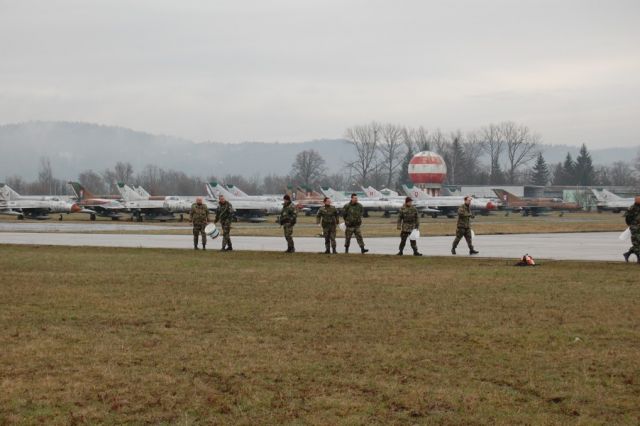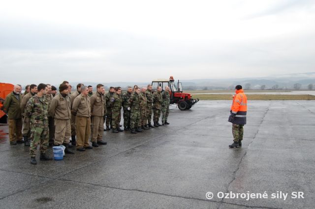Jarná prehliadka letiska V rámci prípravy letiskových plôch na letnú prevádzku sa 31.marca 2009 na Leteckej základni generálmajora Otta Smika Sliač uskutočnila jarná prehliadka letiska. Príslušníci letiskových stavebných rôt a roty letiskového zabezpečenia sa na bočnom ochrannom pásme vzletovej pristávacej dráhy za ranného brieždenia radia do rojnice. Pod dohľadom náčelníka letiskového zabezpečenia kpt. Ing. Gabriela Bobeniča sa rojnica pomaly vydáva na druhý koniec letiska. Ich cieľom je vyčistiť letiskové plochy od kameňov, smetí a úlomkov črepín šrapnelov, ktoré jednotky biologickej ochrany letiska používajú na plašenie voľne žijúceho vtáctva.