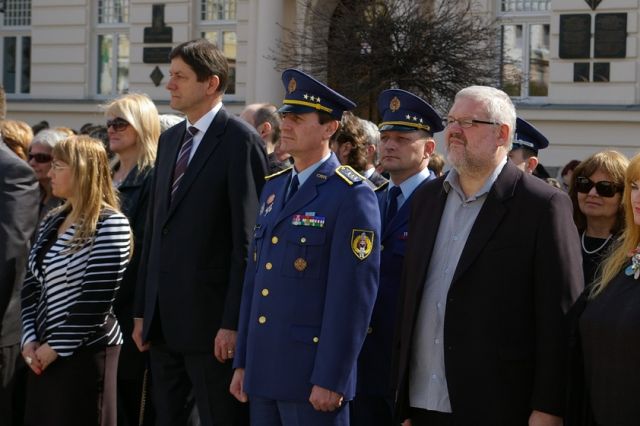 Primátor mesta Banská Bystrica Ján Nosko vo svojom príhovore poďakoval za vysokú účasť a ocenil prítomnosť takmer 400 žiakov banskobystrických základných škôl. Poukázal na hrôzy vojny a vyzval všetky generácie k zamysleniu sa nad dôsledkami, ktoré zo sebou prinášajú rasizmus a xenofóbia.