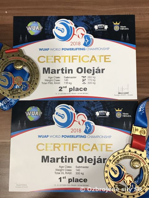 V dňoch 15.-21.októbra 2018 sa v Mestskej športovej hale v Trnave uskutočnili Majstrovstvá sveta „Wuap World Powerlifting Championship 2018“, ktorých účastníkom bol i príslušník Základne stacionárnych KIS Trenčín rtm. Martin OLEJÁR. Dvakrát sa postavil na stupienok víťazov - získal zlatú medailu v disciplíne „Mŕtvy ťah“ vo váhovej kategórii do 140 kg, stal sa Majstrom sveta a vytvoril nový svetový rekord zdvihnutím váhy 300 kg. Zároveň získal striebornú medailu a stal sa Vicemajstrom sveta v disciplíne „Silový trojboj“ s výsledkami: drep 260 kg, tlak na lavičke 170 kg a mŕtvy ťah 300 kg.