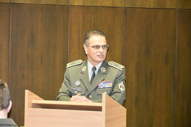 Po ukončení prezentácie predniesol svoj príspevok náčelník ŠbPO GŠ OS SR brigádny generál Ing. Ľubomír Gacko a predstavil plukovníka Ing. Ferdinanda Muríňa, ktorý bude od 1. marca 2019 vykonávať funkciu Náčelníka ŠbPO a zaželal mu veľa zdaru v oblasti KIS.