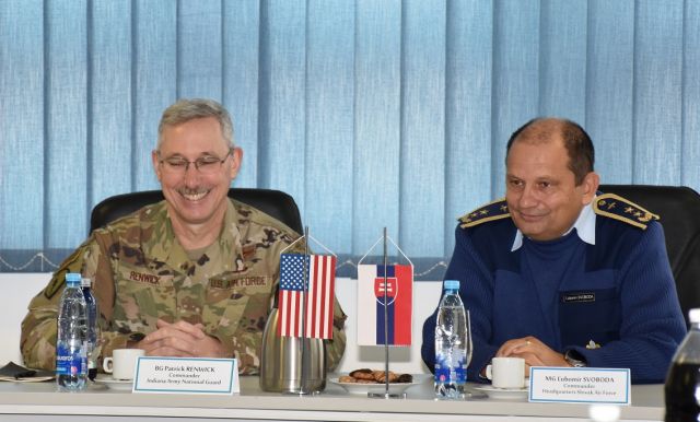 Veliteľ vzdušných síl generálmajor Ľubomír Svoboda privítal dňa 13. novembra 2019 v priestoroch veliteľstva vzdušných síl vo Zvolene delegáciu z Národnej Gardy Indiana, ktorú viedol brigádny generál Patrick R. Renwick.