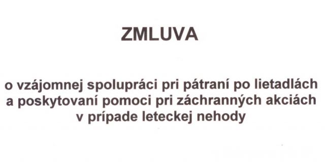 Dňa 26. januára 2010 bola ministrom dopravy, pôšt a telekomunikácii Slovenskej republiky, ministrom vnútra Slovenskej republiky a ministrom obrany Slovenskej republiky schválená „Zmluva o vzájomnej spolupráci pri pátraní po lietadlách a poskytovaní pomoci pri záchranných akciách v prípade leteckej nehody“.